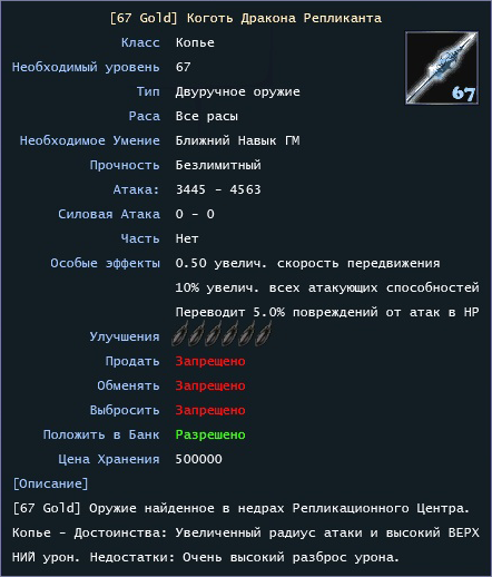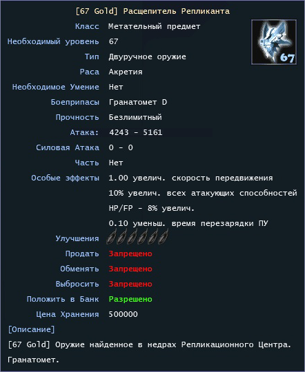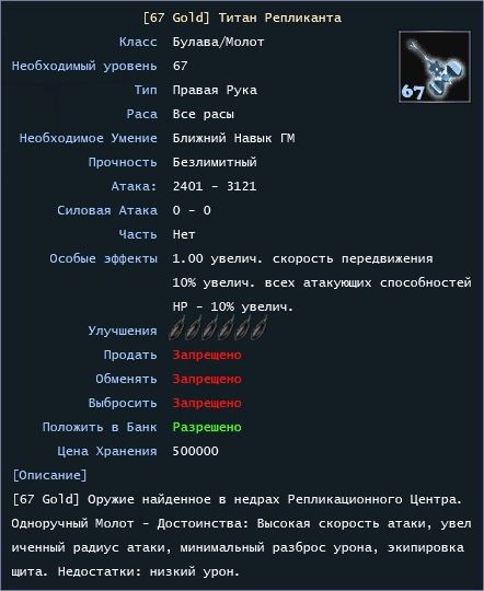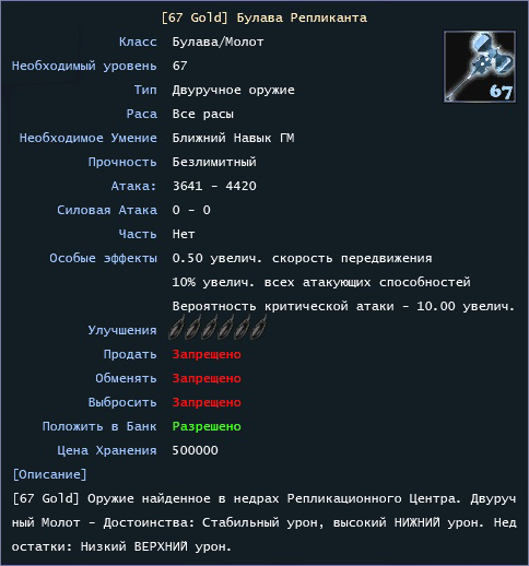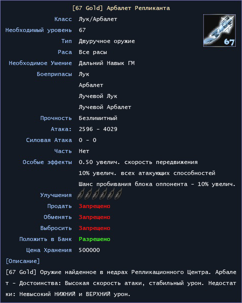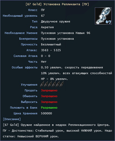 Есть 2 способа получить [67 Gold] Оружие: Купить готовое оружие в Ген-Штабе выбранной расы у NPC Командующий Офицер ИЛИ скрафтить самостоятельно из [65 Gold] Оружия, для этого вам понадобятся следующие ресурсы: