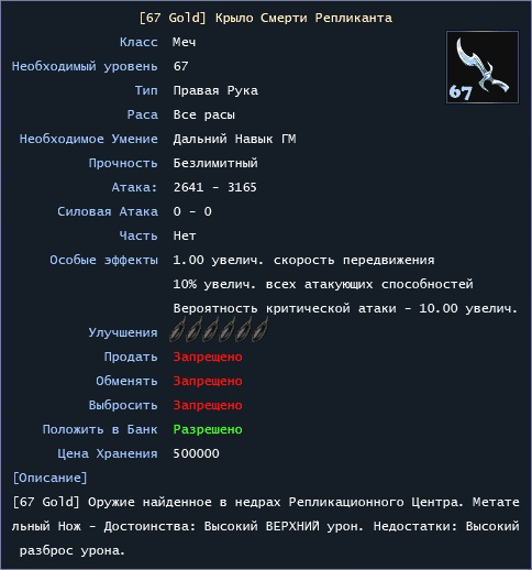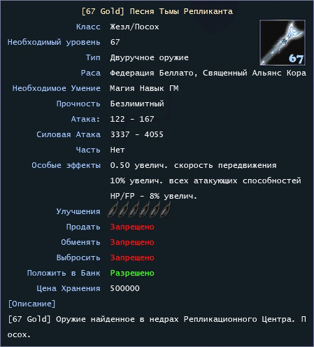 Помимо заточки [67 Gold] Оружие, возможно улучшить с помощью дополнительных магических свойств.