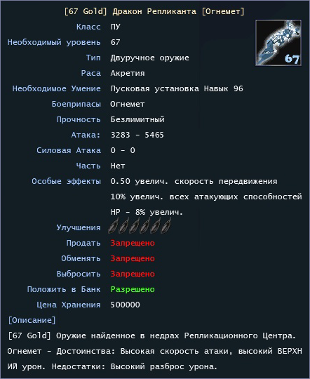[67 Gold] Дракон Репликанта [Огнемет]:
