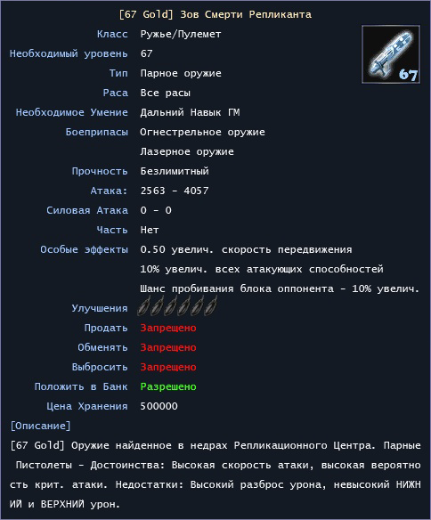 На сервере Х100 для вас доступен широкий ассортимент разнообразного оружия. Например [67 Gold] Оружие Репликанта.