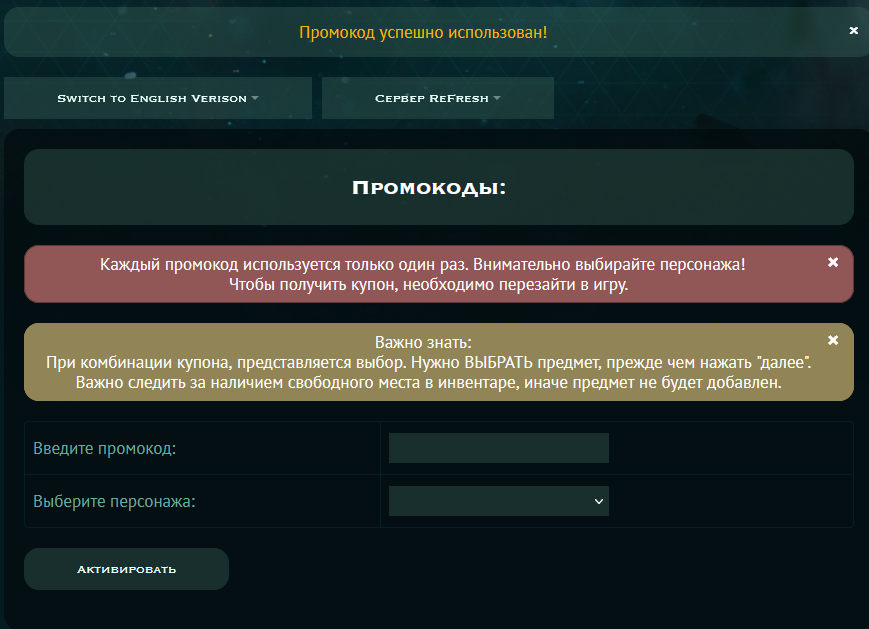 Промокод на автолут "ReFresh_AoP_OBT", не работает на аккаунт, а только на одного персонажа которого выбирали при активации промокода.