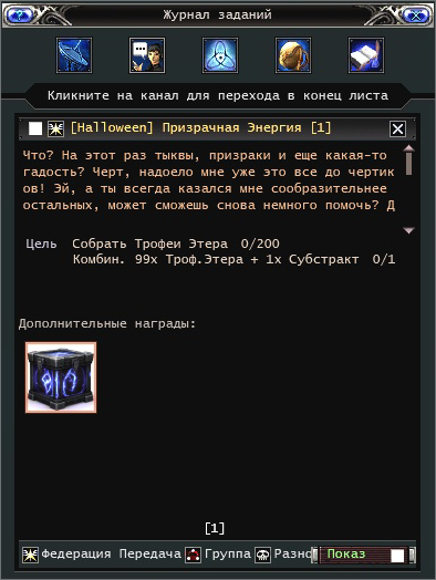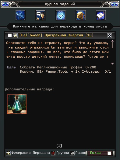 ○ В награду за выполнение квеста вы получите [Halloween] Призрачный Субстракт.