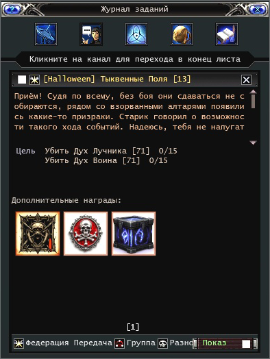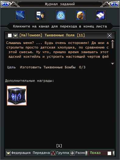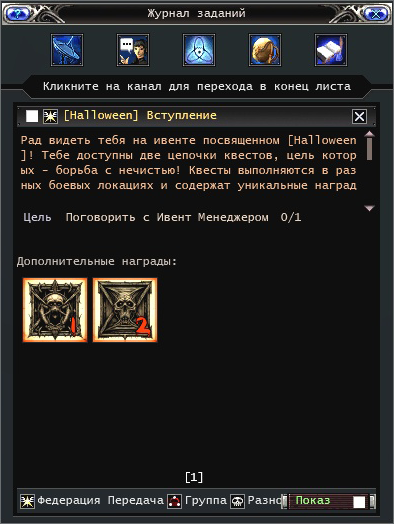 В период с 17 октября до 3 ноября (05:59 по Мск.) для вас будут доступны ДВЕ основные квестовые цепочки, приуроченные к празднованию Хеллоуина. Для начала прохождения которых, необходимо взять первое задание у NPC Ивент Менеджер, в Ген-Штабе выбранной расы.