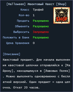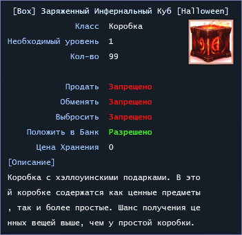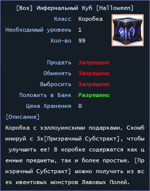 ○ В награду за выполнение квеста вы получите [Box] Инфернальный Куб [Halloween].
