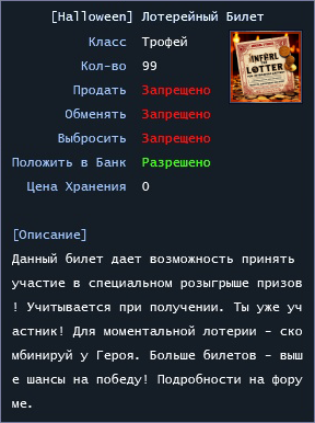 (Внимание! Получив билет, Вы уже являетесь участником лотереи и не важно останется ли билет у Вас в инвентаре или нет)